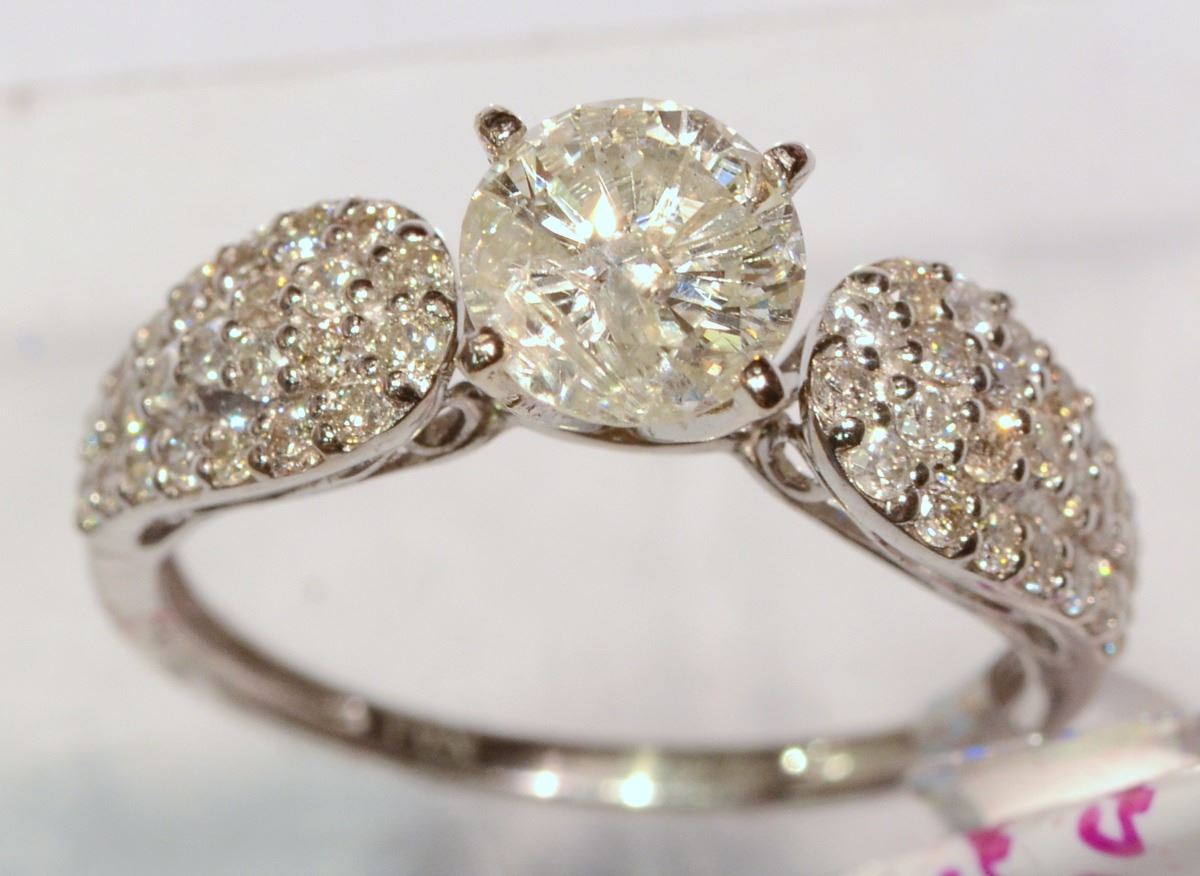CUT DIAMONDS CENTRE DIAMOND (1.18CT) , 46 ROUND BRILLIANT CUT DIAMONDS - COMES WITH COA SUGGESTED REPLACEMENT VALUE $10500