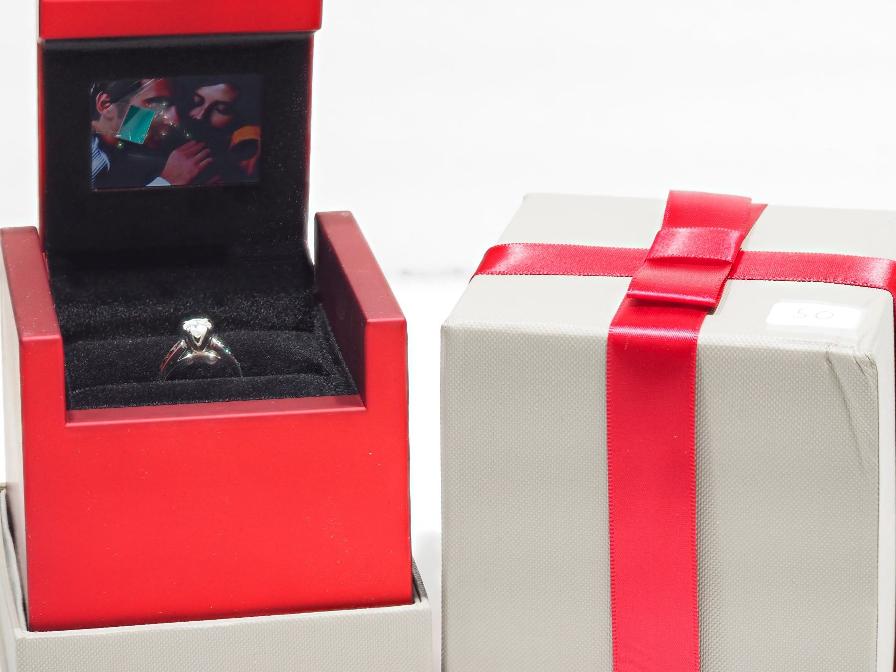 (50 - MM16) DIAMONDS (0.24CT) RING W/ MUSIC AND VIDEO BOX WITH COA- SUGGESTED REPLACEMENT VALUE $14,800.00 SIZE 7