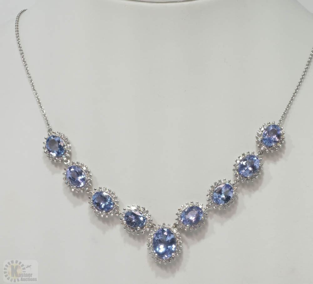 14KT WHITE GOLD TANZANITE(18.19CT) NECKLACE ACCENTED BY 168 SINGLE CUT DIAMONDS W/ COA - SUGGESTED REPLACEMENT VALUE $30,800.00
