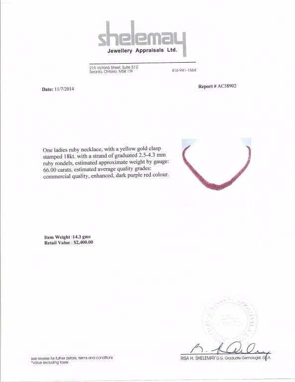 W/ COA -SUGGESTED REPLACEMENT VALUE $2,400.00