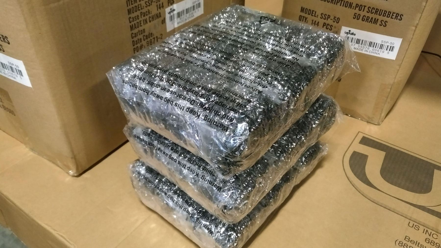 KW1202 - NEW 50 GRAM STAINLESS POT SCRUBBERS - LOT OF 36 (1.8KG)