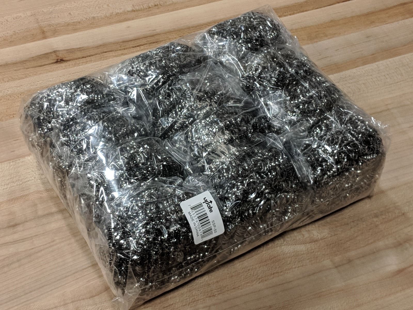 K829 NEW 50 GRAM STAINLESS POT SCRUBBERS - LOT OF 12 (600 GRAMS)