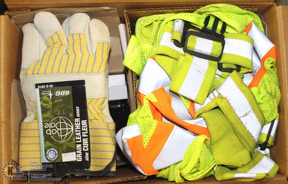 #50-LOT WITH TRUCKERS GLOVES, LIGHTS, VEST