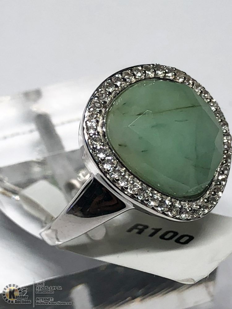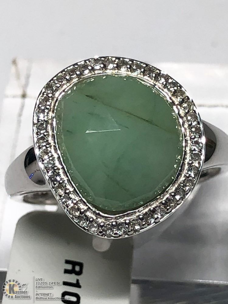 50-JP122 - STERLING SILVER EMERALD RING. JEWELLERY