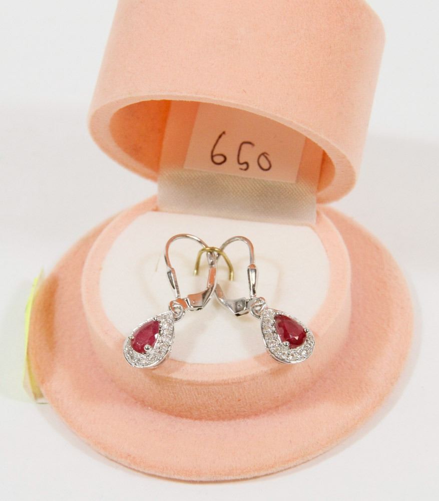 650 - CR62 - STERLING SILVER RUBY CUBIC ZIRCONIA EARRINGS (~WEIGHT 2.4G). JEWELRY