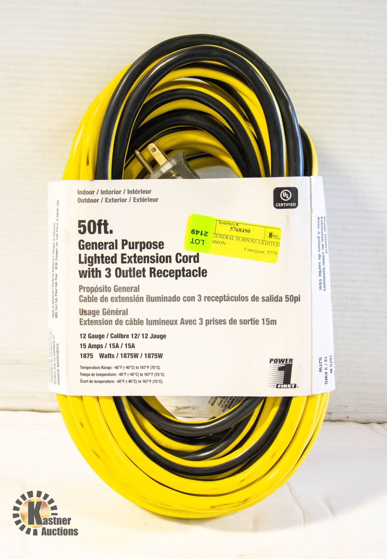 CORD WITH 3 OUTLETS RECEPTACLE 12 GAUGE/15 AMPS/ 1875 WATTS