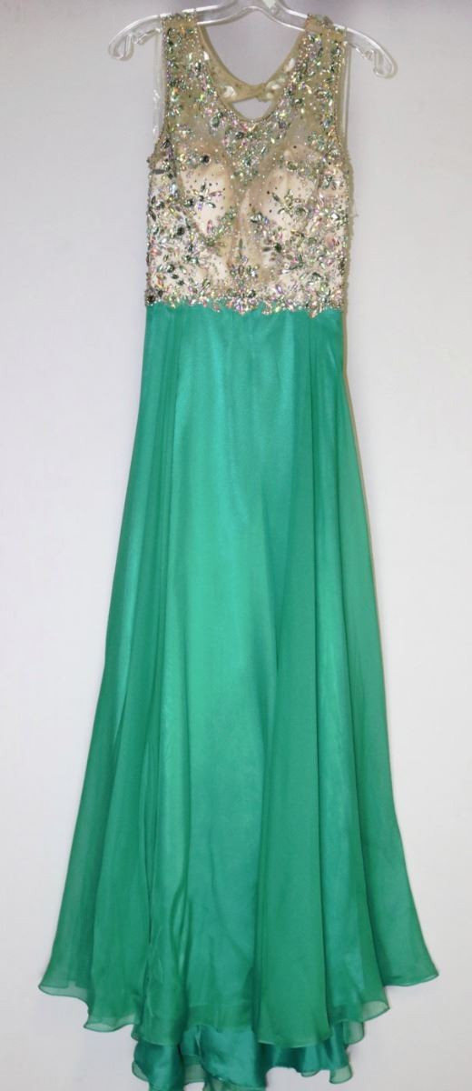 51-GOLD & GREEN BACKLESS GOWN SIZE 9/10