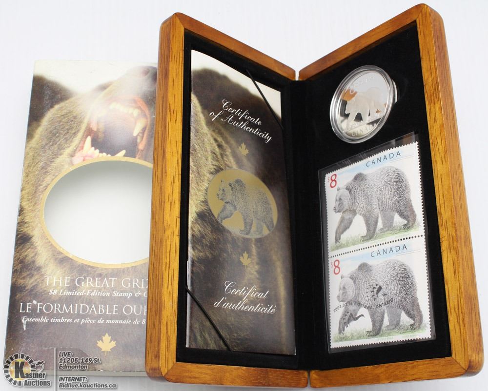 GRIZZLY - THE COIN IS EXCLUSIVE TO THIS SET - INCLUDES 2 $8 STAMPS AND COA