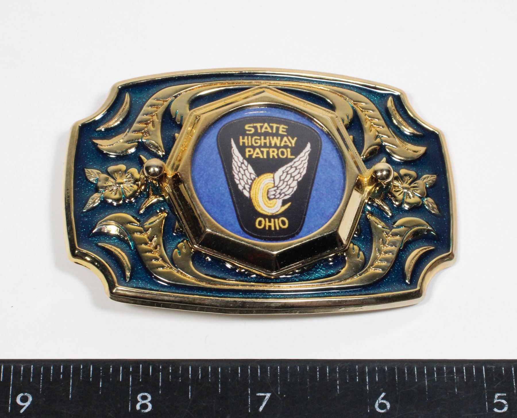 BELT BUCKLE HAS POLICE INSIGNIA PICTURE IN CIRCULAR CENTER ON BELT BUCKLE, AND IS UNMARKED ON REVERSE. UNITED STATES OF AMERICA POLICE LAW ENFORCEMENT INSIGNIA 1900'S 20TH CENTURY