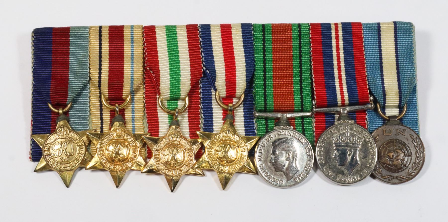 MOUNTED MINIATURE MINI MEDALS BRITISH COMMONWEALTH 1939-1945 STAR AFRICA STAR ITALY STAR FRANCE AND GERMANY STAR DEFENCE MEDAL 1939-1945 MEDAL UNFICYP UNITED NATIONS PEACEKEEPING FORCE IN CYPRUS WORLD WAR TWO AND COLD WAR ERA SET