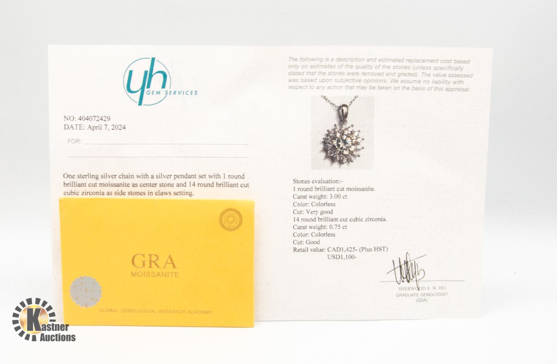 MOISSANITE STONE VVS D COLOR SET IN CENTER IN 925 SILVER PENDANT RETAIL VALUE $1,425.00 **ALL ITEMS MUST BE REMOVED BY 5PM SATURDAY, AUGUST 31ST 2024. ALL REMAINING ITEMS WILL BE SUBJECT TO A $6.00 PER DAY STORAGE CHARGE. ANY ITEMS REMAINING AFTER MONDAY, SEPTEMBER 23RD 2024 WILL BE CONSIDERED FORFEITED. NO REFUNDS WILL BE ISSUED FOR FORFEITED ITEMS. TO SCHEDULE A PICK UP APPOINTMENT CLICK HERE