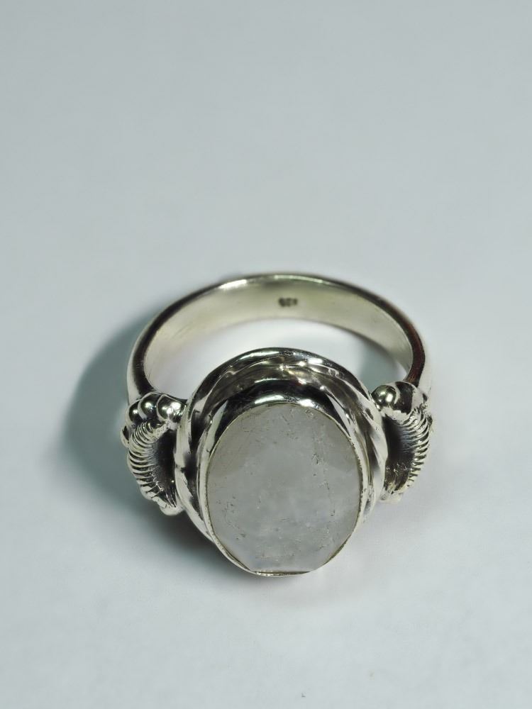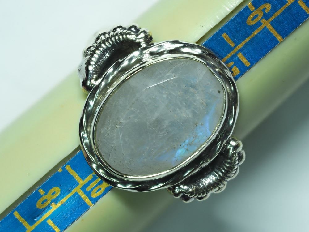 53 - JM37 - STERLING SILVER MOONSTONE RING (SIZE 7). JEWELRY