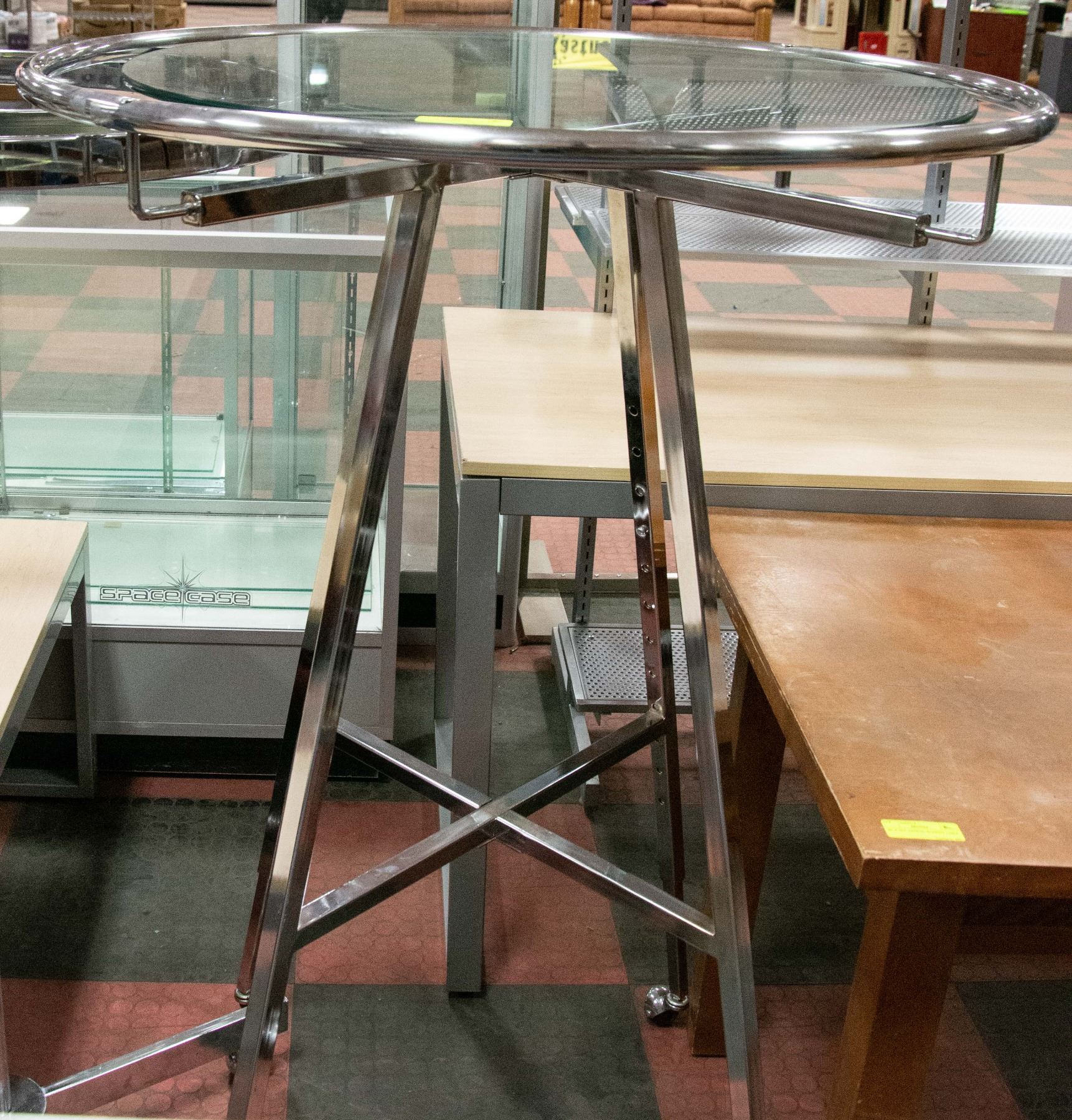 53" TALL APPROX. CHROME AND GLASS CLOTHING RACK