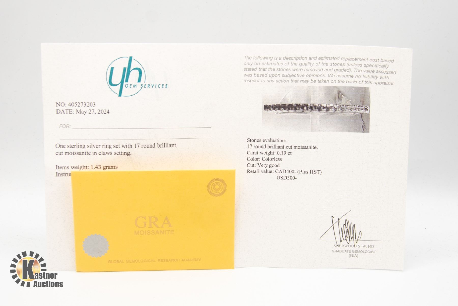 MOISSANITE STONES VVS D COLOR SET IN 925 SILVER RING SIZE 8 RETAIL VALUE $400.00 **ALL ITEMS MUST BE REMOVED BY 5PM SATURDAY, AUGUST 31ST 2024. ALL REMAINING ITEMS WILL BE SUBJECT TO A $6.00 PER DAY STORAGE CHARGE. ANY ITEMS REMAINING AFTER MONDAY, SEPTEMBER 23RD 2024 WILL BE CONSIDERED FORFEITED. NO REFUNDS WILL BE ISSUED FOR FORFEITED ITEMS. TO SCHEDULE A PICK UP APPOINTMENT CLICK HERE