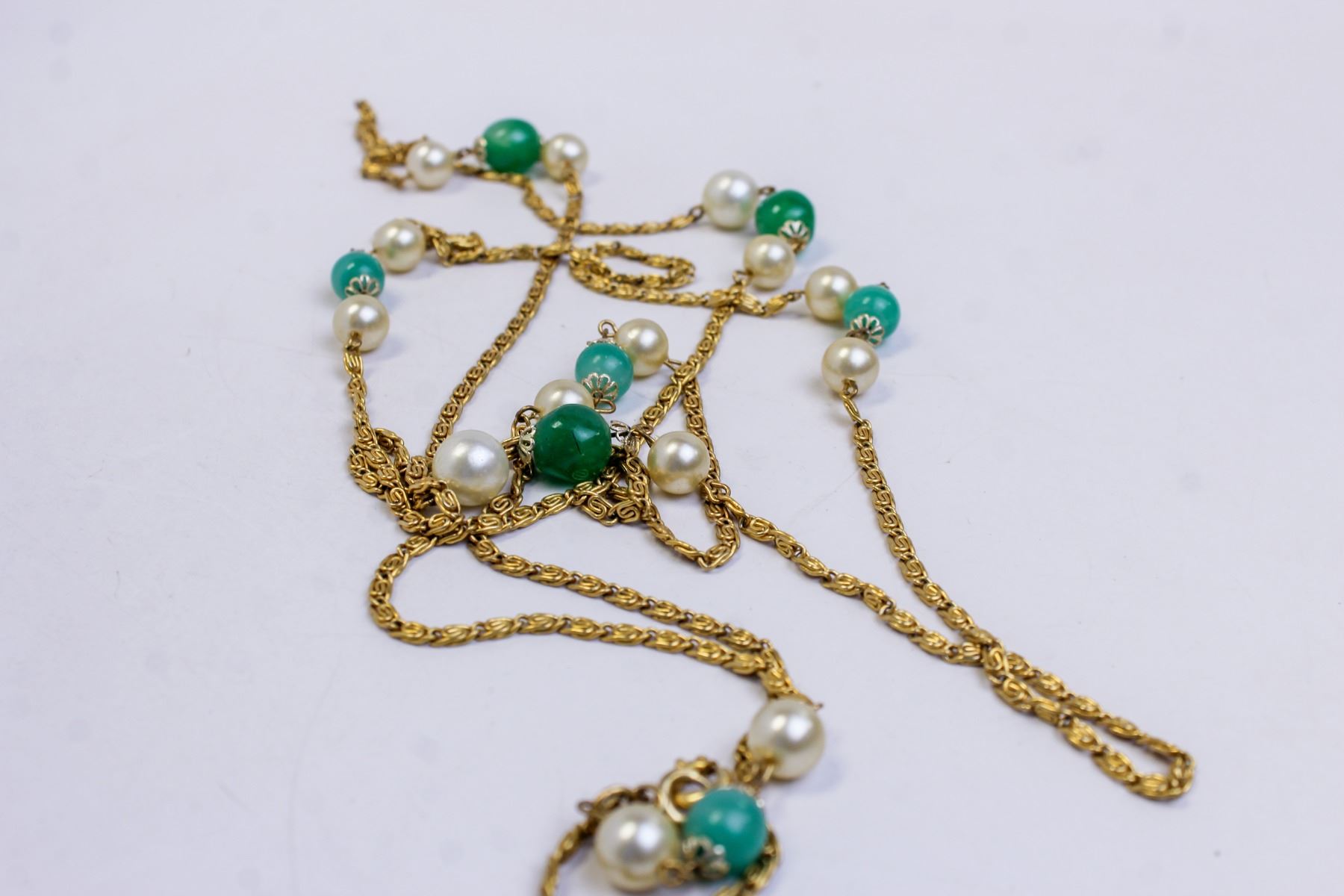 54" GOLD TONE CHAIN WITH FAUX PEARLS