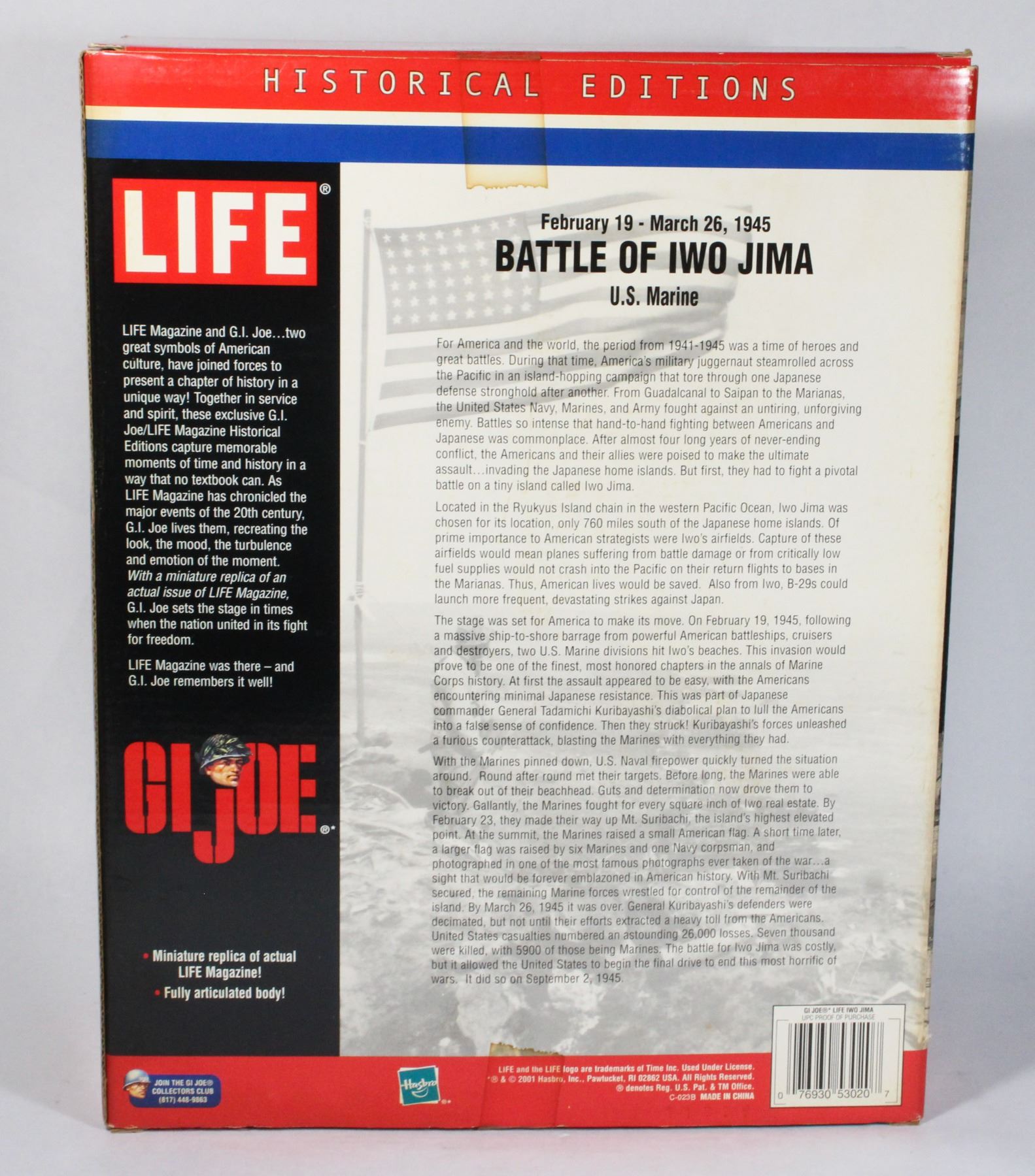 12 Inch Boxed Action Figure G.I. Joe GI Joe Hasbro U.S. Marine February 19th- March 26th 1945 World War II 2001