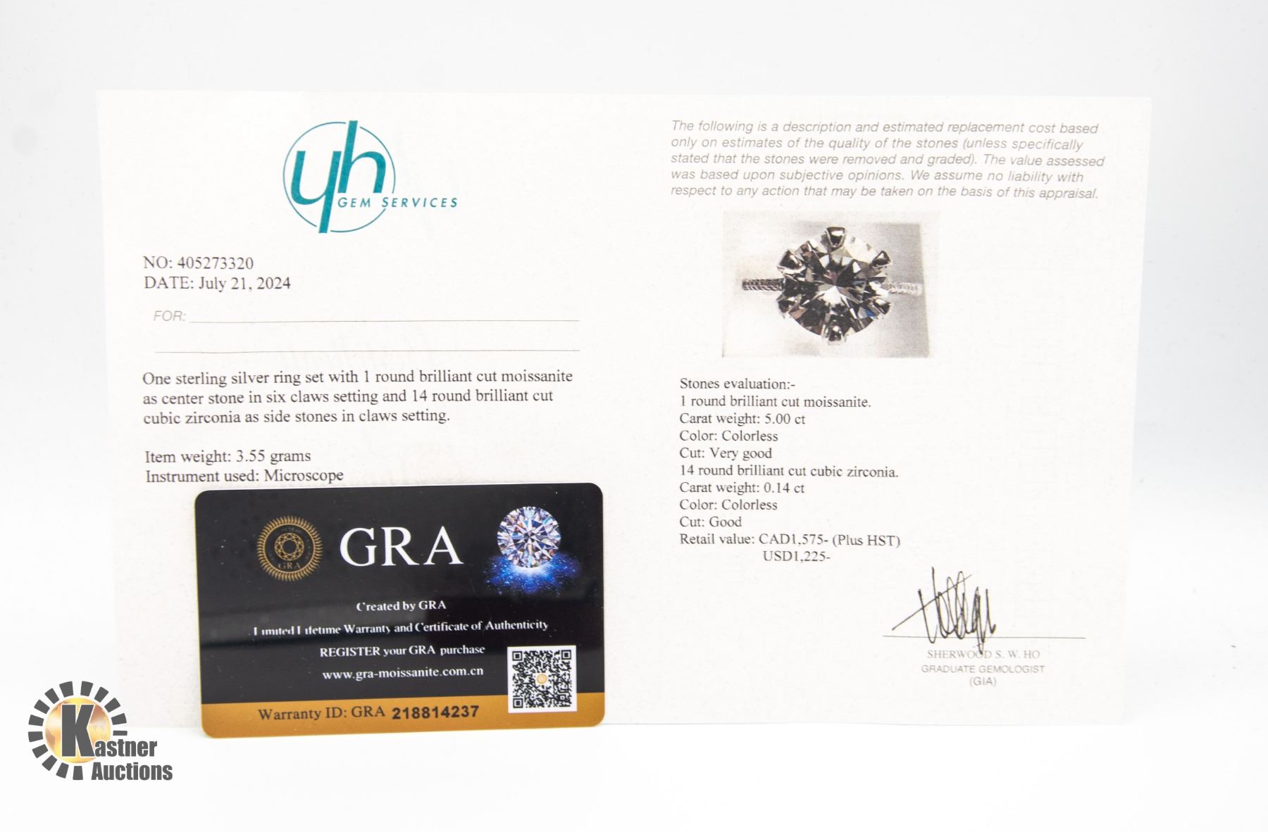 MOISSANITE STONE VVS D COLOR SET IN CENTER IN 925 SILVER RING SIZE 9.25 RETAIL VALUE $1,575.00 **ALL ITEMS MUST BE REMOVED BY 5PM SATURDAY, SEPTEMBER 7th 2024. ALL REMAINING ITEMS WILL BE SUBJECT TO A $6.00 PER DAY STORAGE CHARGE. ANY ITEMS REMAINING AFTER MONDAY, SEPTEMBER 23RD 2024 WILL BE CONSIDERED FORFEITED. NO REFUNDS WILL BE ISSUED FOR FORFEITED ITEMS. TO SCHEDULE A PICK UP APPOINTMENT CLICK HERE