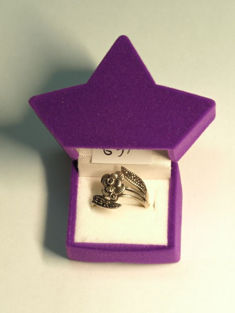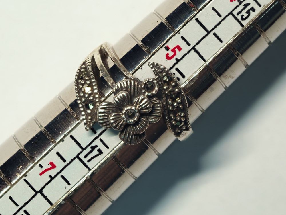 657 - CR62 - STERLING SILVER MARCASITE RING (SIZE 5.5) (~WEIGHT 2.5G). JEWELRY