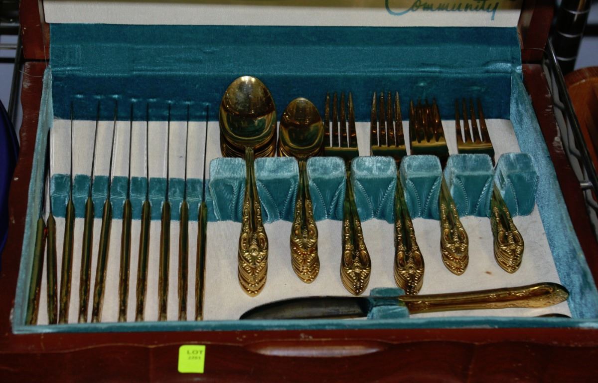 58PC STAINLESS STEEL GOLD COLOR CUTLERY IN BOX