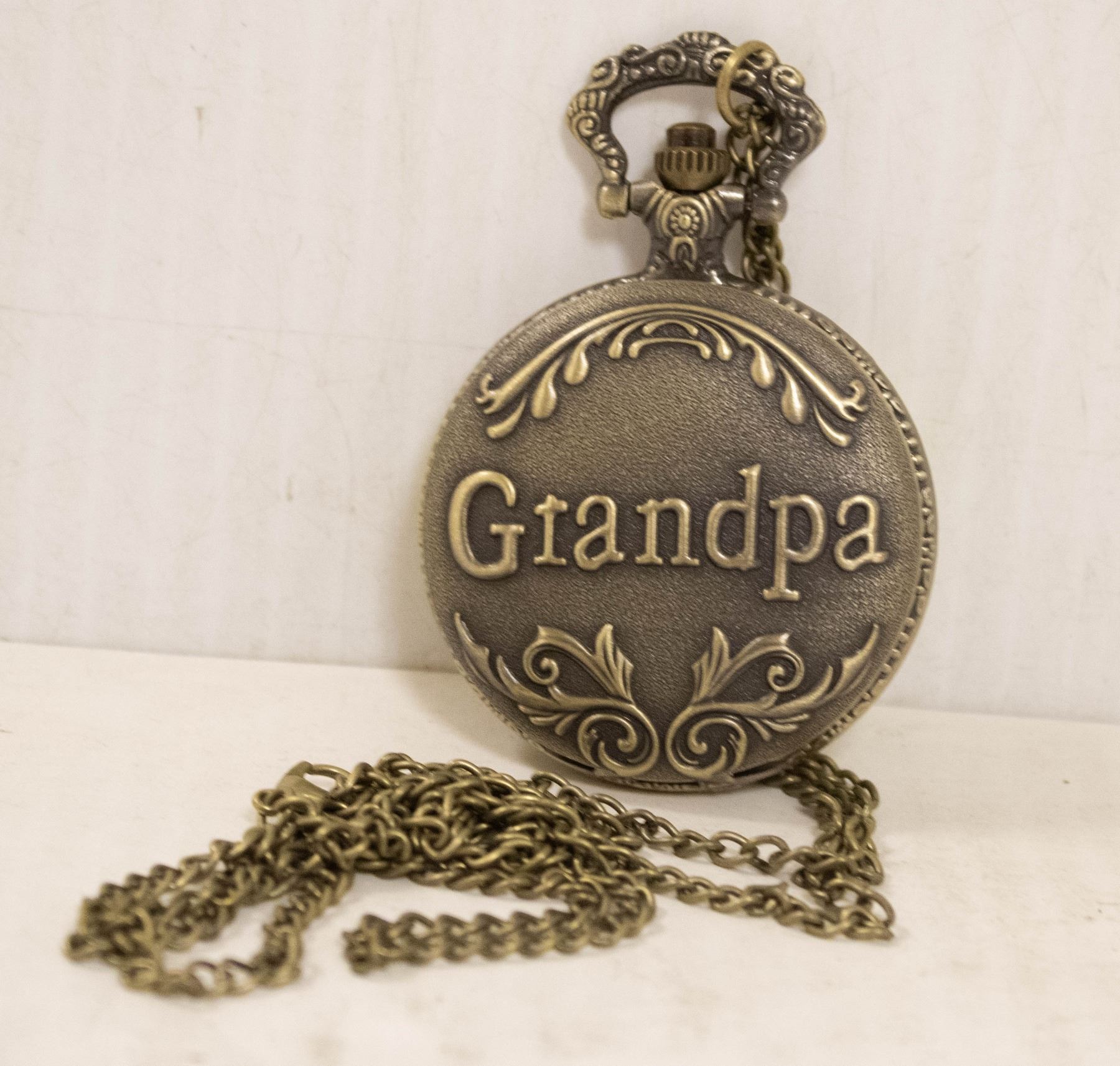 GRANDPA WRITTEN ON FRONT COVER OF WATCH WITH LONG CHAIN **ALL ITEMS MUST BE REMOVED BY 5PM SATURDAY, JUNE 15TH 2024. ALL REMAINING ITEMS WILL BE SUBJECT TO A $6.00 PER DAY STORAGE CHARGE. ANY ITEMS REMAINING AFTER MONDAY, JULY 1ST 2024 WILL BE CONSIDERED FORFEITED. NO REFUNDS WILL BE ISSUED FOR FORFEITED ITEMS. TO SCHEDULE A PICK UP APPOINTMENT CLICK HERE