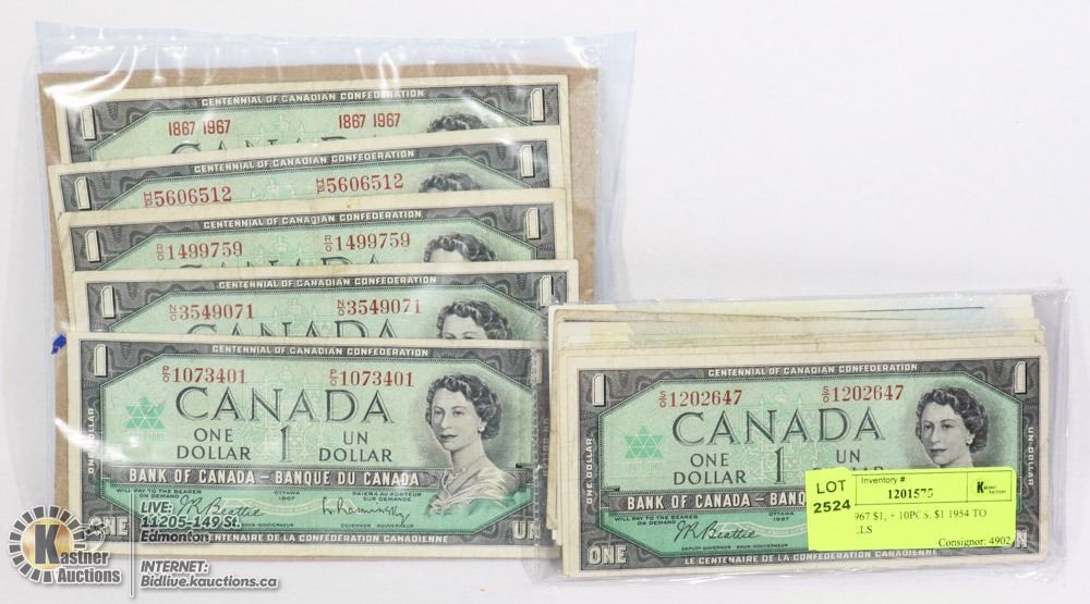 5PCS. 1967 $1, + 10PCS. $1 1954 TO 1973 BILLS