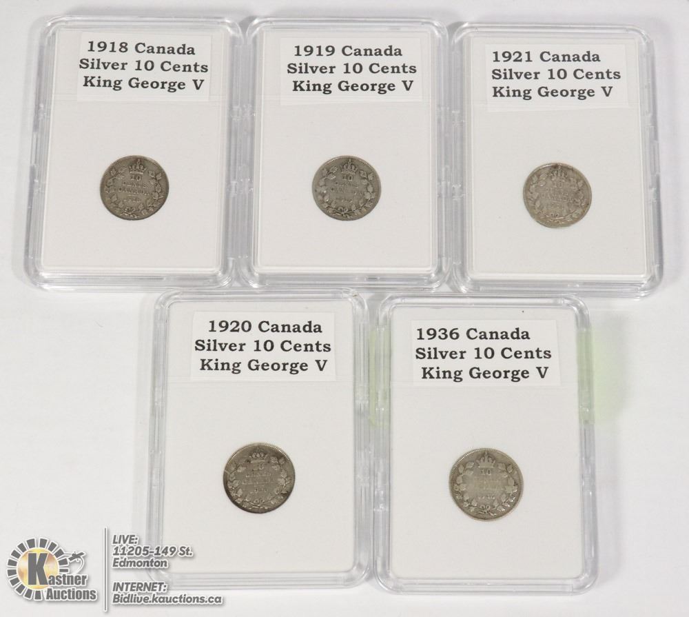 90% SILVER. THE 1918, 1919, 1920 ALL ARE STRONG COINS, 1921 (VERY SMALL DENT), 1936 SOME WEAR. - CURRENCY
