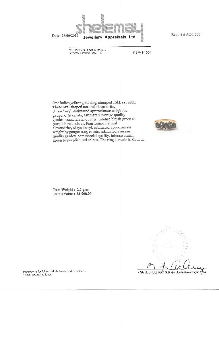 10K YELLOW GOLD ALEXANDRITE(0.75CT) & (0.25CT) RING. W/ COA- SUGGESTED RETAIL VALUE $1,900.00