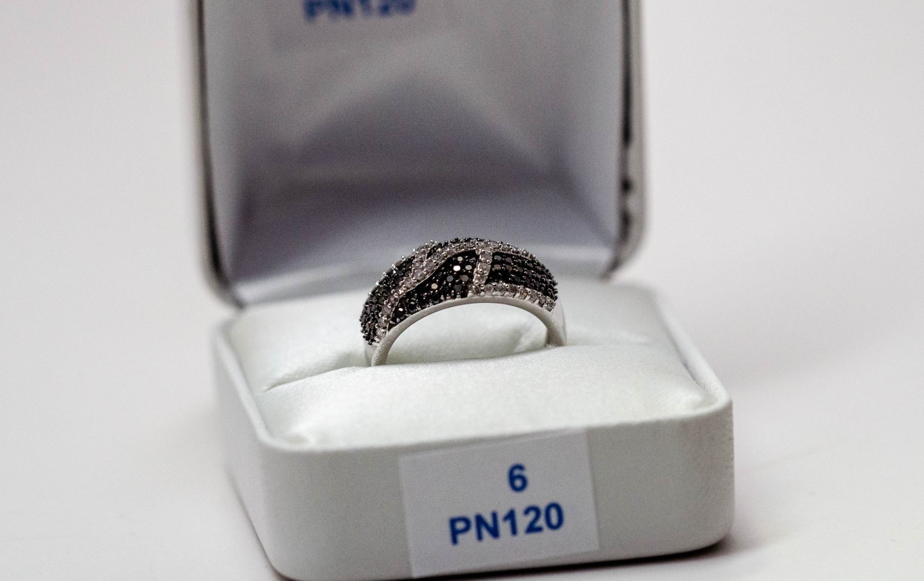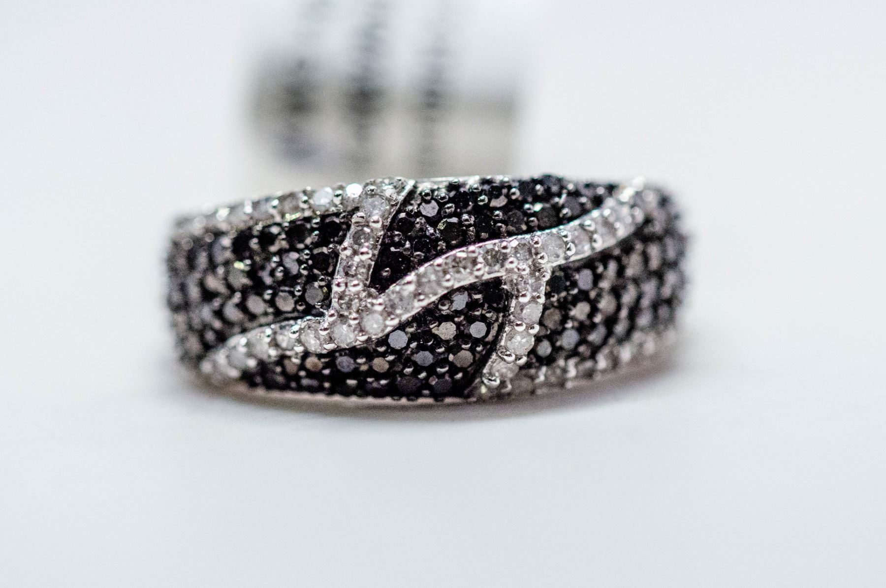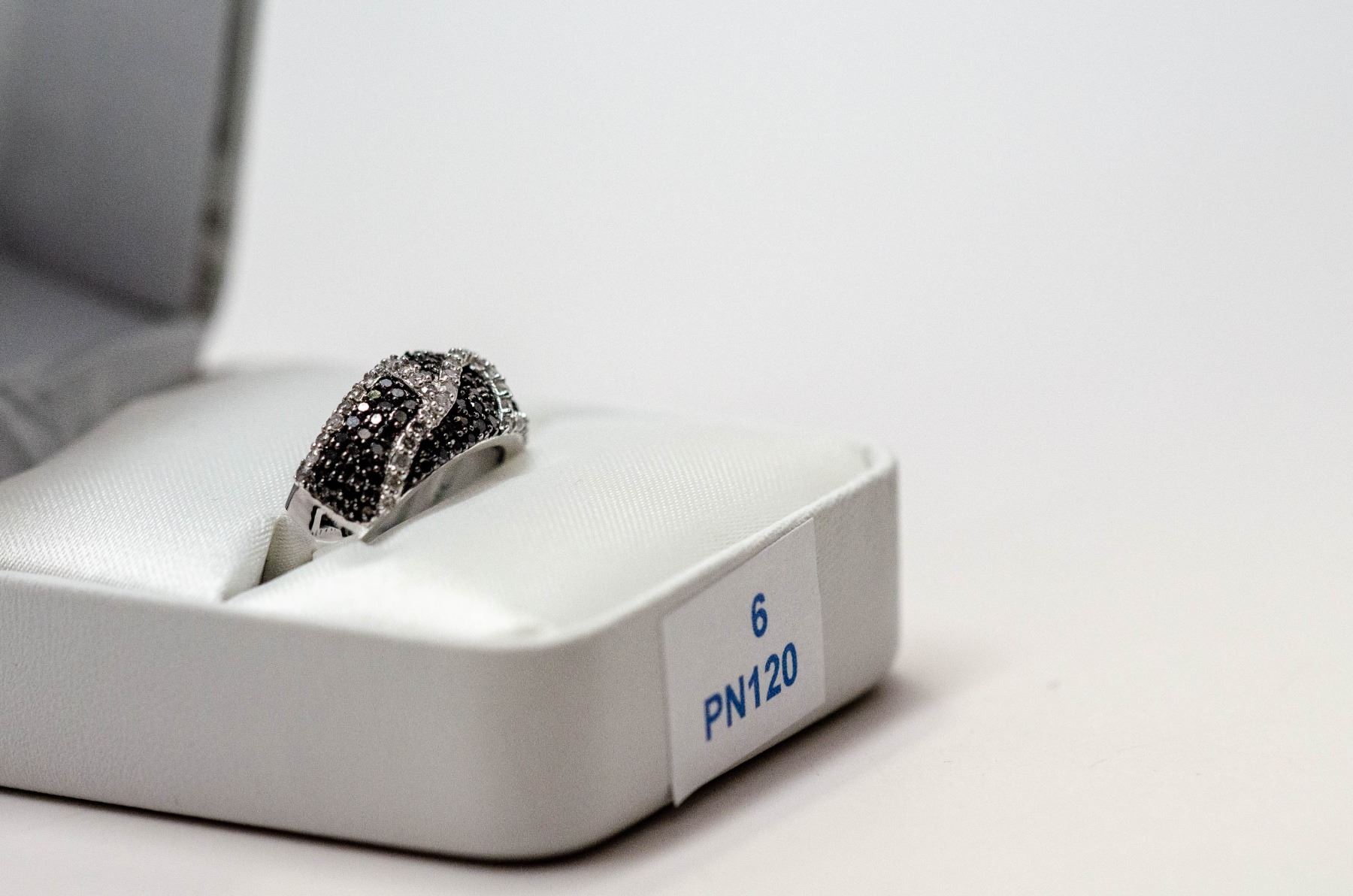 6) 10KT WHITE GOLD BLACK DIAMOND RING, SIZE 7