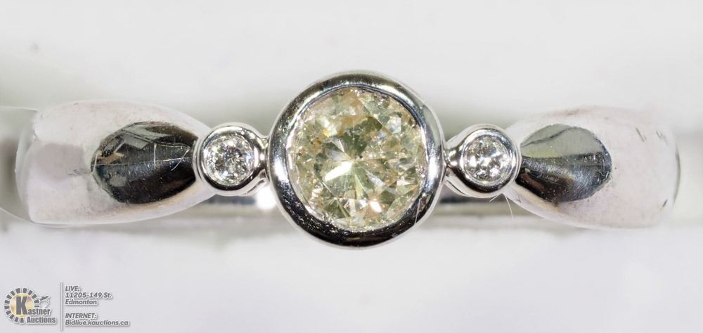 6 - MM86 - 10KT WHITE GOLD DIAMOND (0.30CT) RING SIZE 6.75 WITH 2 SIDE DIAMONDS (0.03CT) (2.25GRMS) MADE IN CANADA W/COA. SUGGESTED REPLACEMENT VALUE $2209.00. JEWELLERY