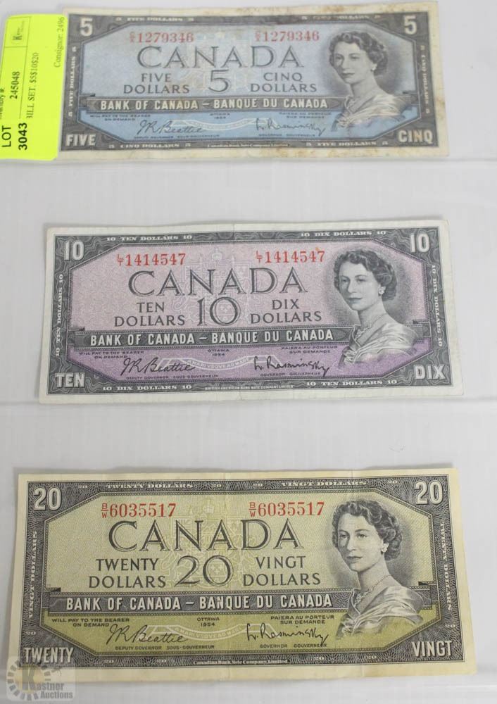 1 EACH CANADA BANKNOTES 1954 $5 , $10, $20