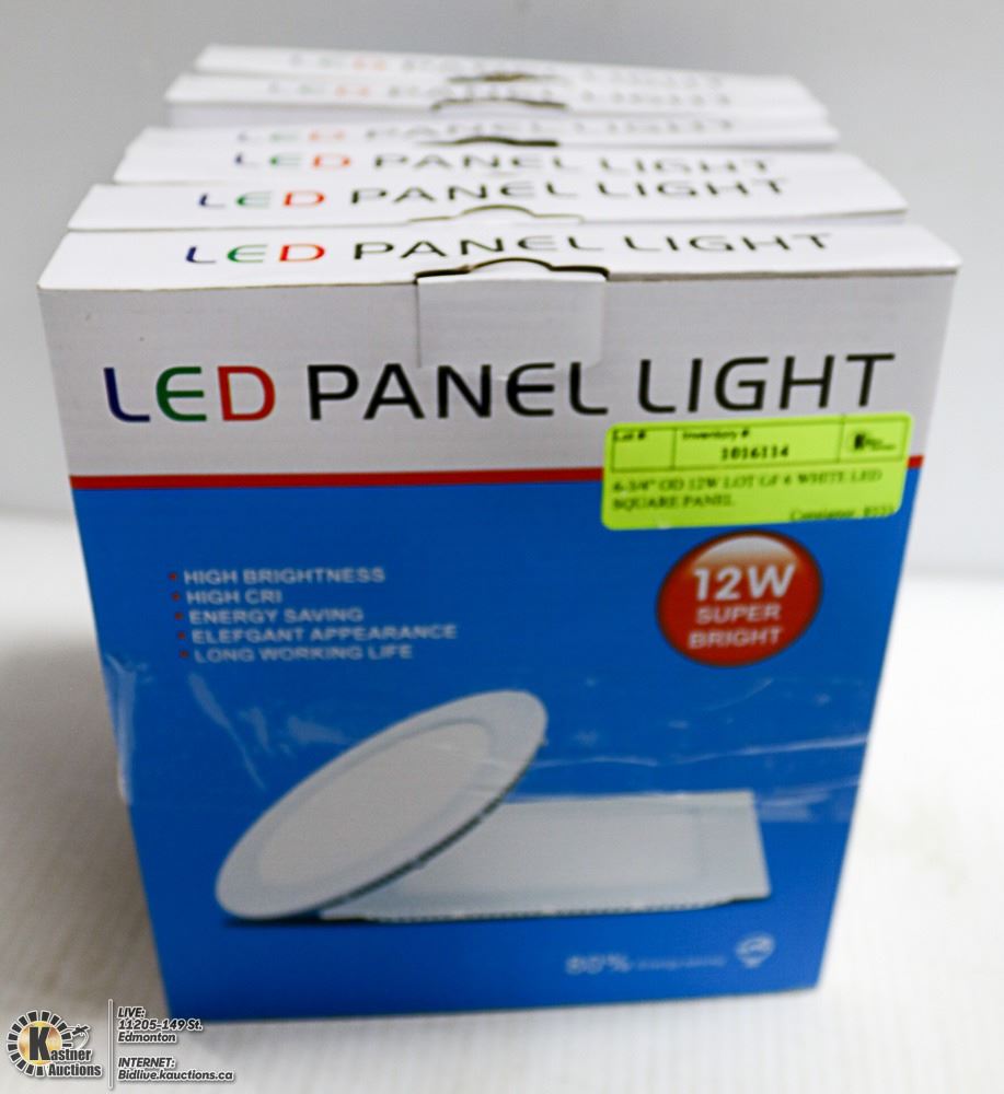 6-3/4  OD 12W LOT OF 6 WHITE LED SQUARE PANEL