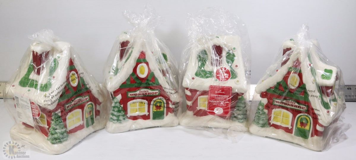 #6)4 SANTA WORKSHOP LIGHTED HOUSES