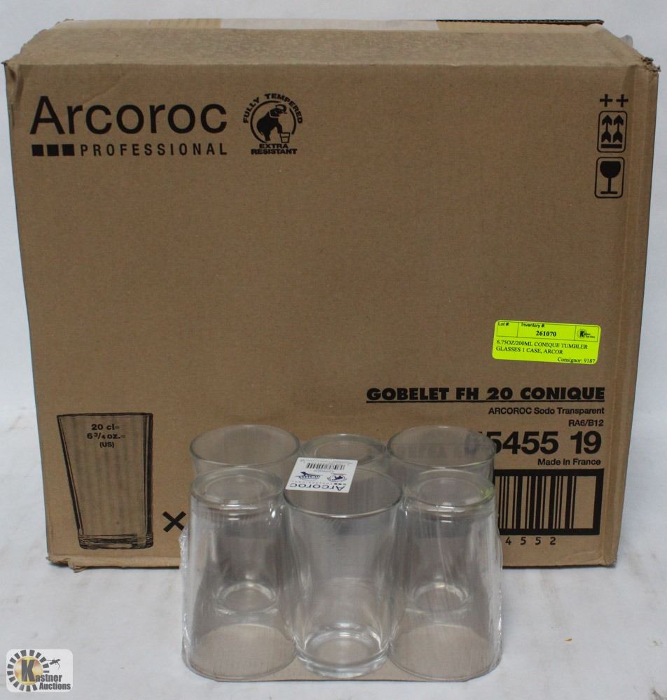 KW118 - NEW 6.75OZ/200ML CONIQUE TUMBLER GLASSES - LOT OF 72 (1 CASE/12 PACKS), ARCOROC 55455
