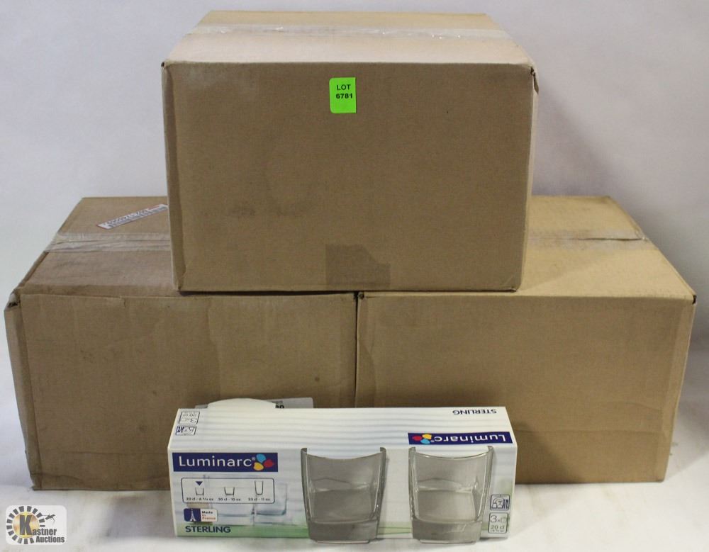 KW189 - NEW 6.75OZ/200ML STERLING SQUARE JUICE GLASSES - LOT OF 54 (3 CASES/18 BOXES), LUMINARC 08149