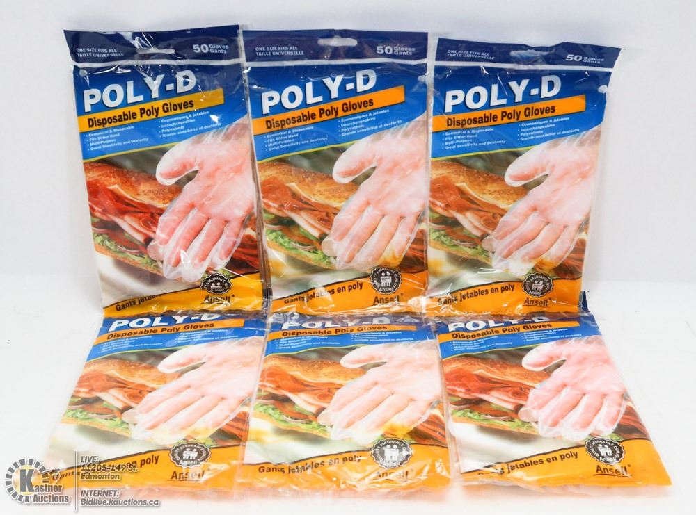6 BAGS OF DISPOSABLE POLY GLOVES 1 BAG = 50 GLOVES