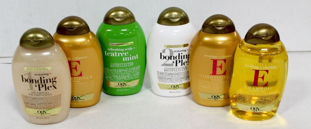 6 BOTTLES OF OGX SHAMPOO AND CONDITIONER.