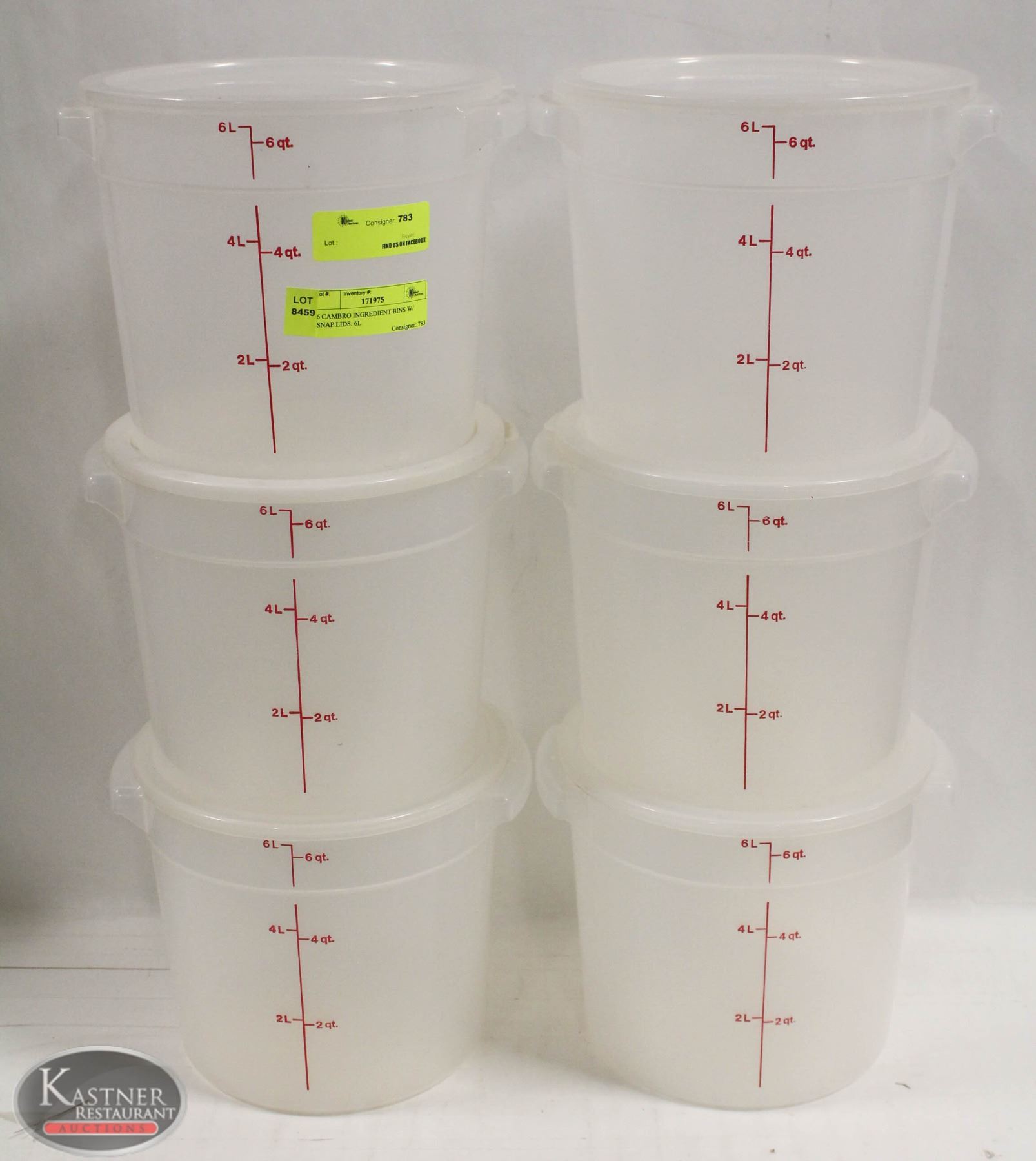 6 CAMBRO INGREDIENT BINS W/ SNAP LIDS. 6L