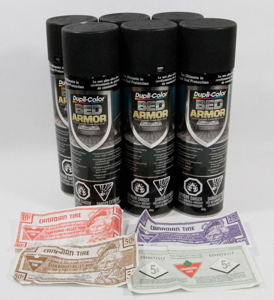 6 CANS OF RED ARMOUR TRUCK BOX LINER