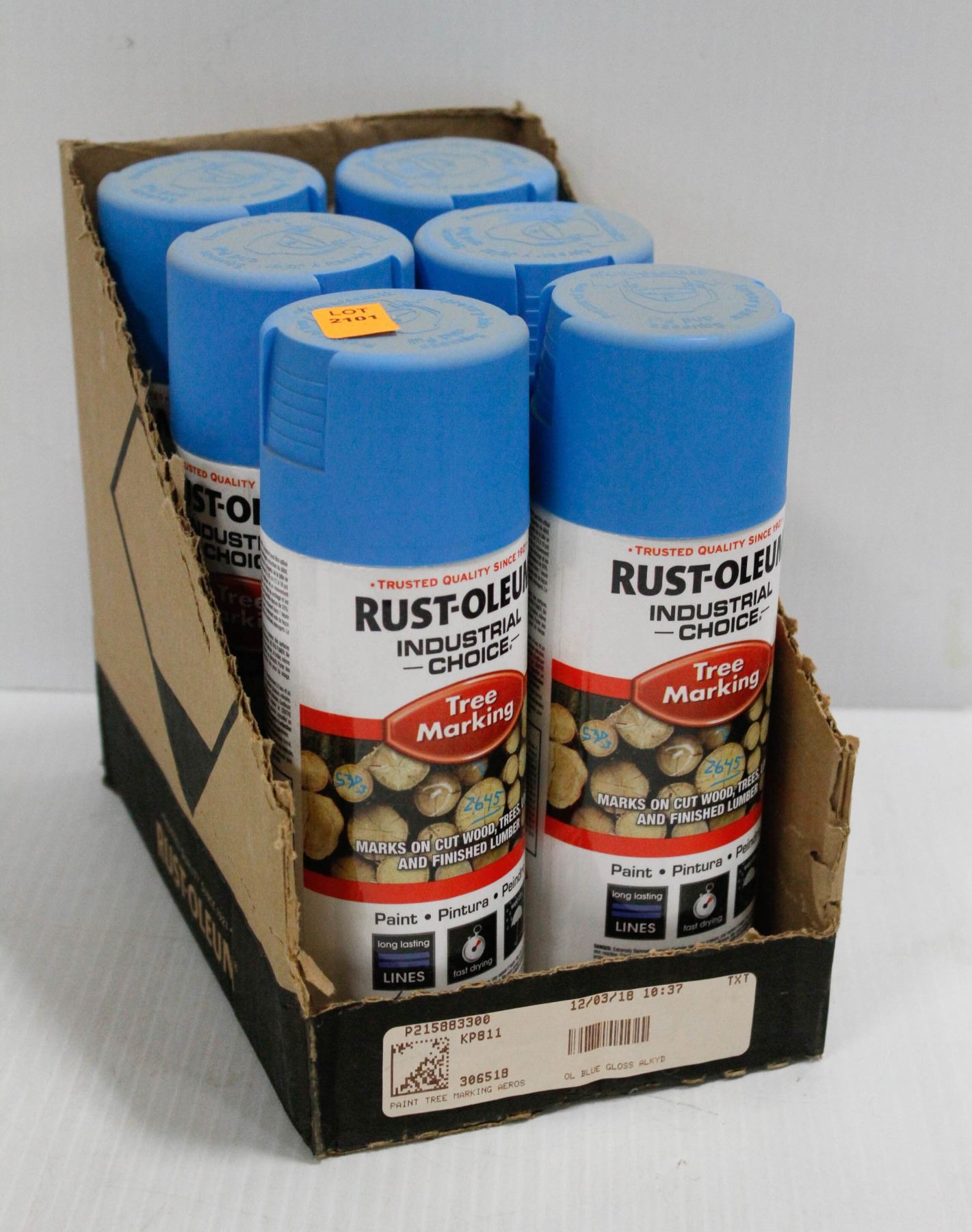 6 CANS OF RUSTOLIUM TREE MARKING PAINT BLUE