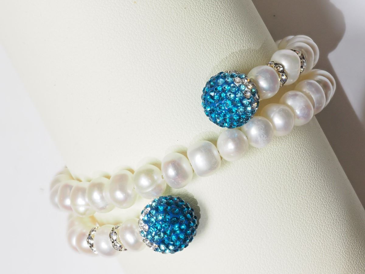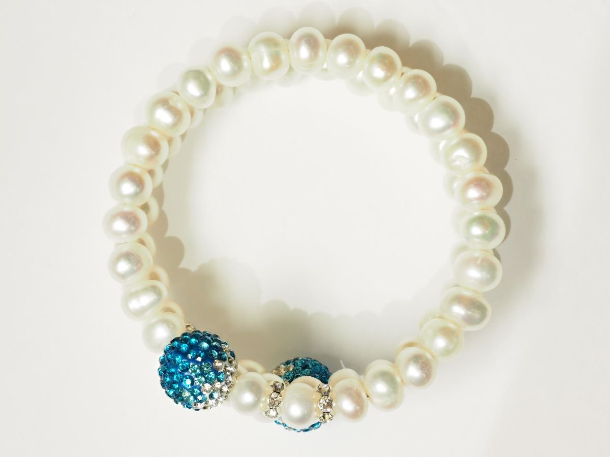 #6-FW PEARL BRACELET WITH CUBIC CRYSTAL BEADS