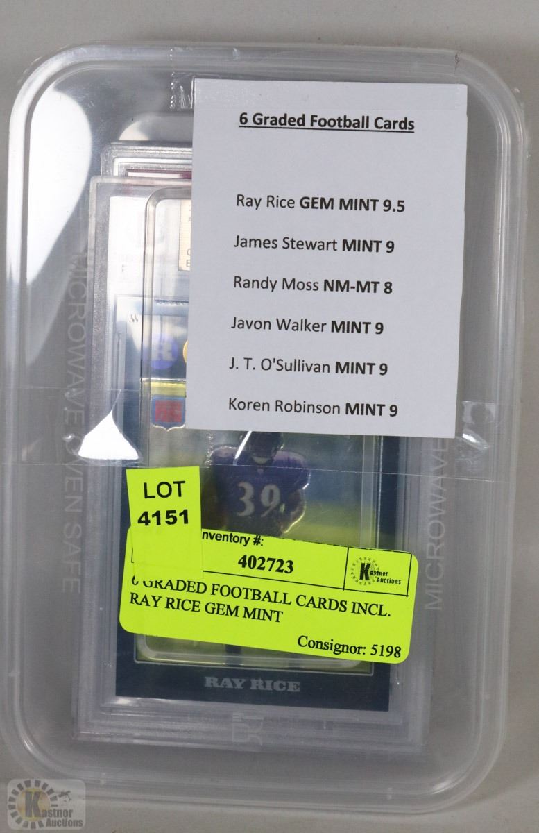9.5, JAMES STEWART MINT 9, RANDY MOSS NM-MT8,JAVON WALKER MINT 9 AND MORE