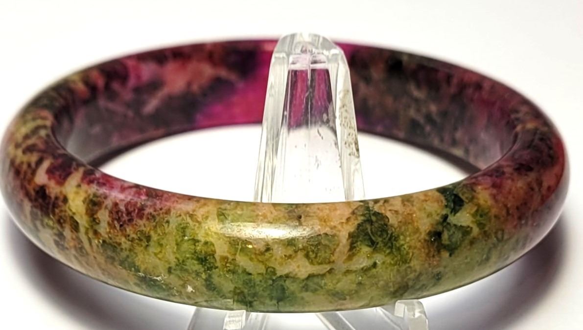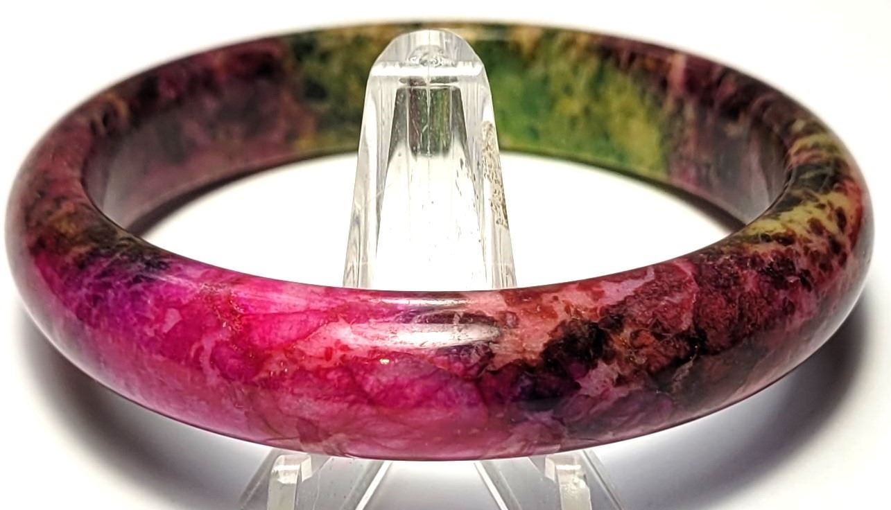 6) NATURAL PEACOCK PEACH BLOSSOM JADE BRACELET,