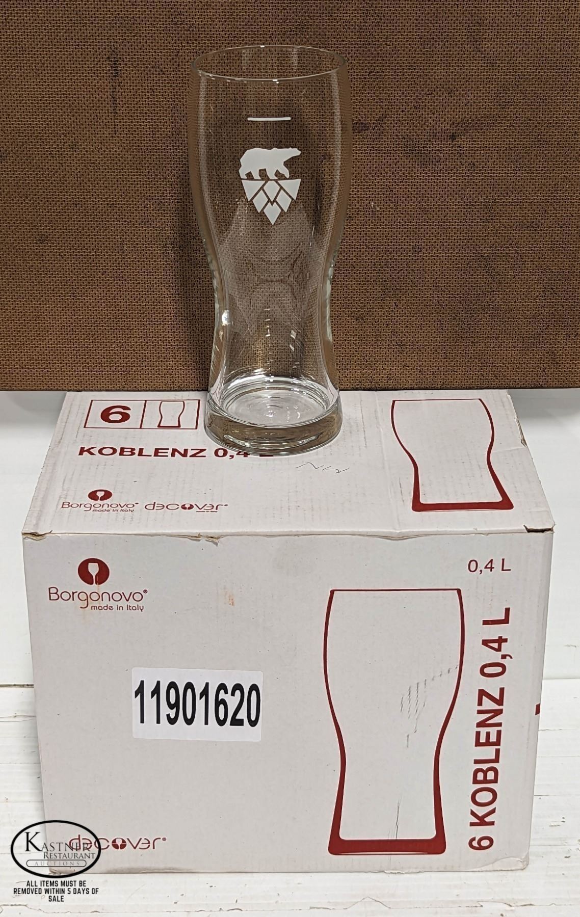 GLASSES. BORGONOVO KOBLENZ STYLE GLASSES. BOX OF 6 GLASSES**ALL ITEMS MUST BE REMOVED BY 5PM MONDAY, OCTOBER 23RD, 2023. ALL REMAINING ITEMS WILL BE SUBJECT TO A $6.00 PER DAY STORAGE CHARGE. ANY ITEMS REMAINING AFTER MONDAY, NOVEMBER 6TH, 2023 WILL BE CONSIDERED FORFEITED. NO REFUNDS WILL BE ISSUED FOR FORFEITED ITEMS.** TO SCHEDULE A PICK UP APPOINTMENT CLICK HERE
