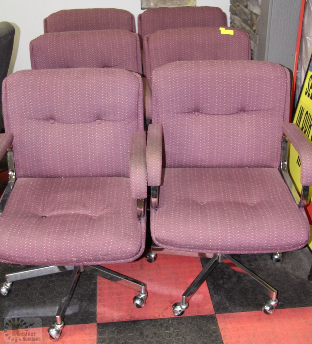 6 OFFICE CHAIRS ON CASTORS (PINK)