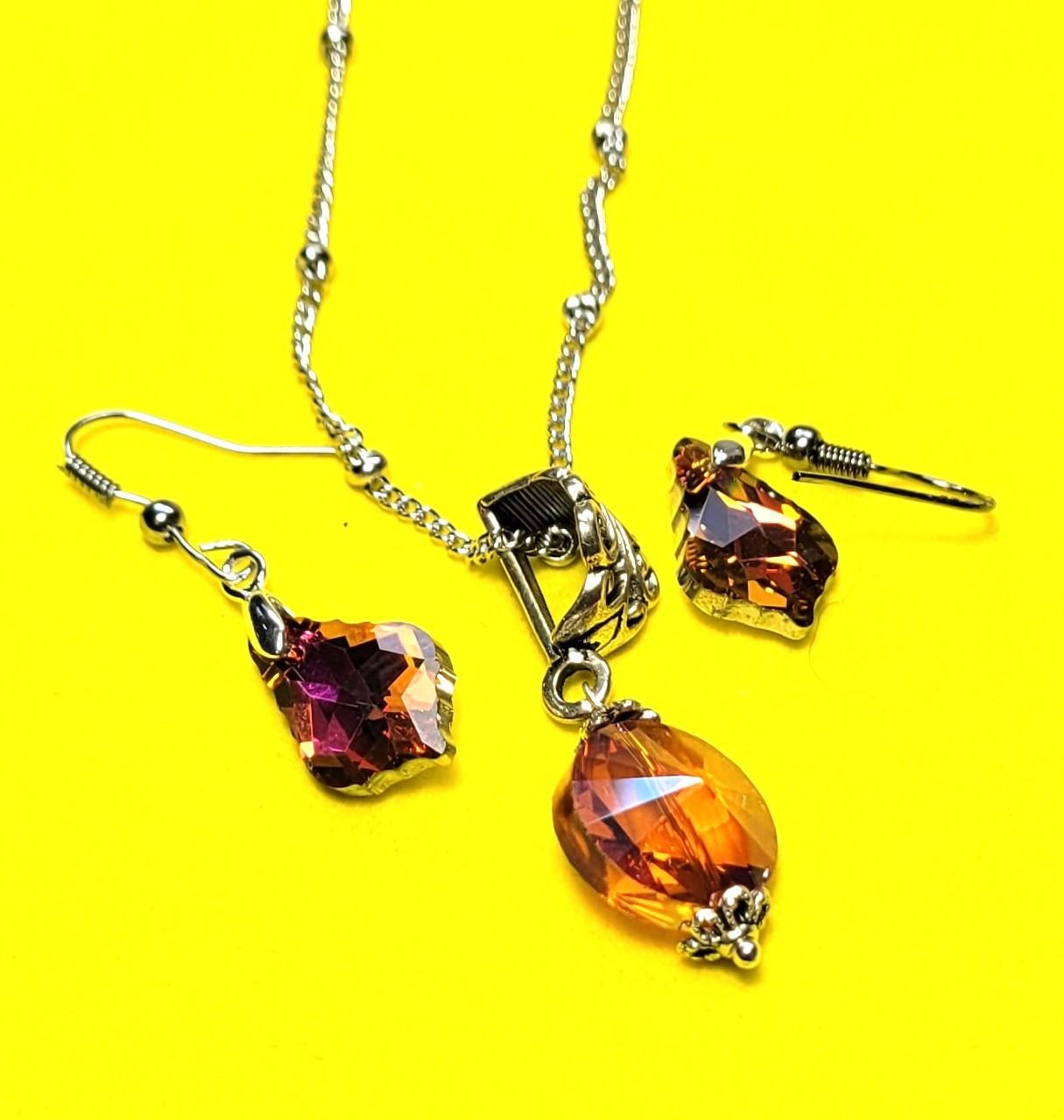 18" CHAIN AND MATCHING DROP EARRINGS. JEWELERY