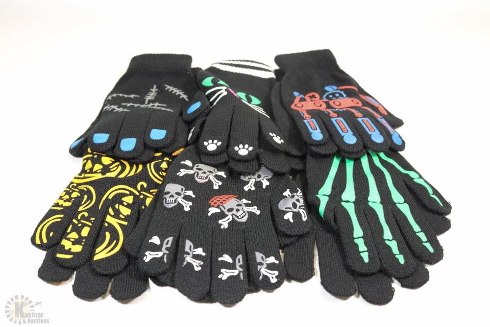 6 PACK GLOW IN THE DARK HALLOWEEN GLOVES