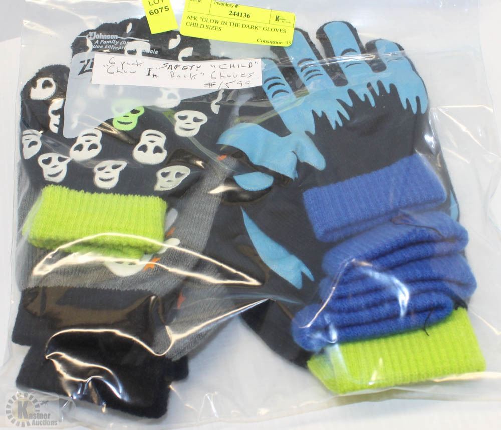 6 PACK OF GLOW IN THE DARK CHILDRENS GLOVES