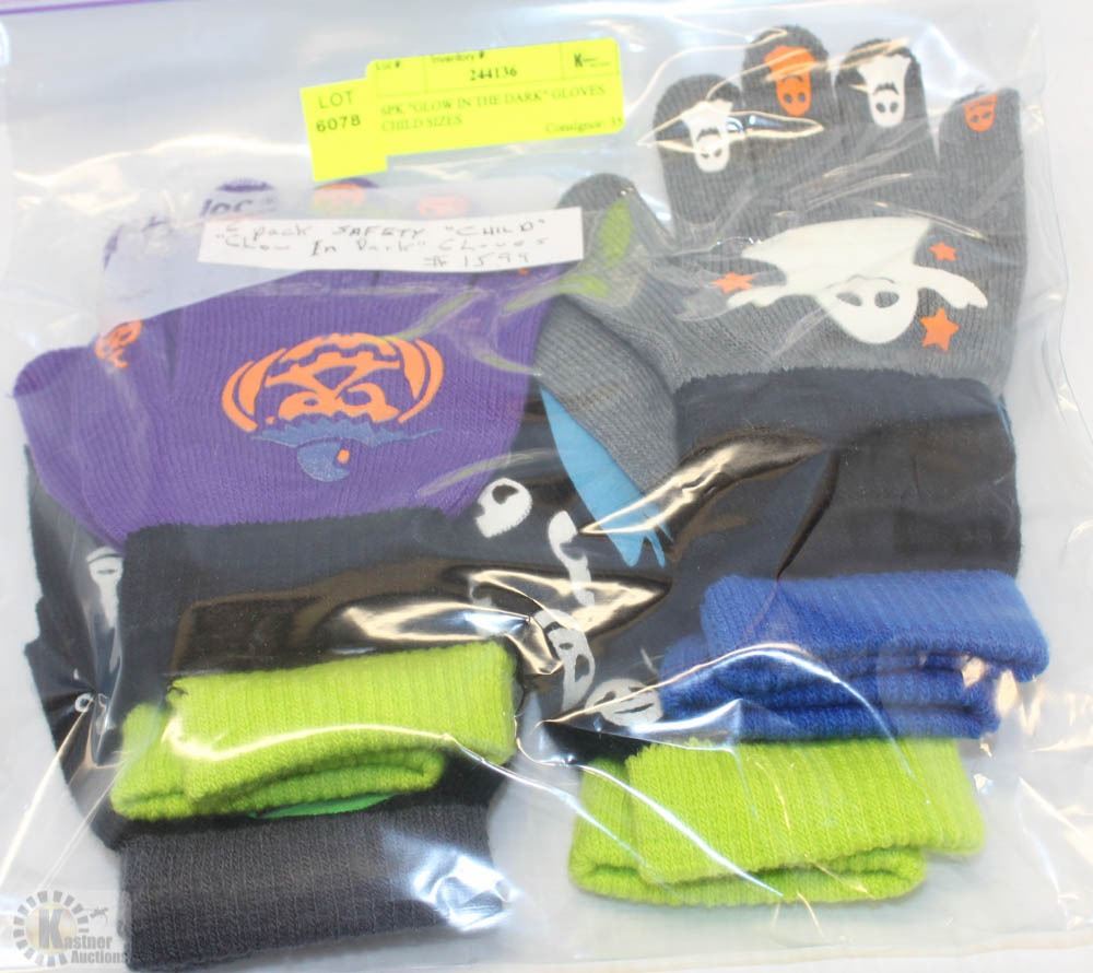 6 PACK OF GLOW IN THE DARK CHILDRENS GLOVES
