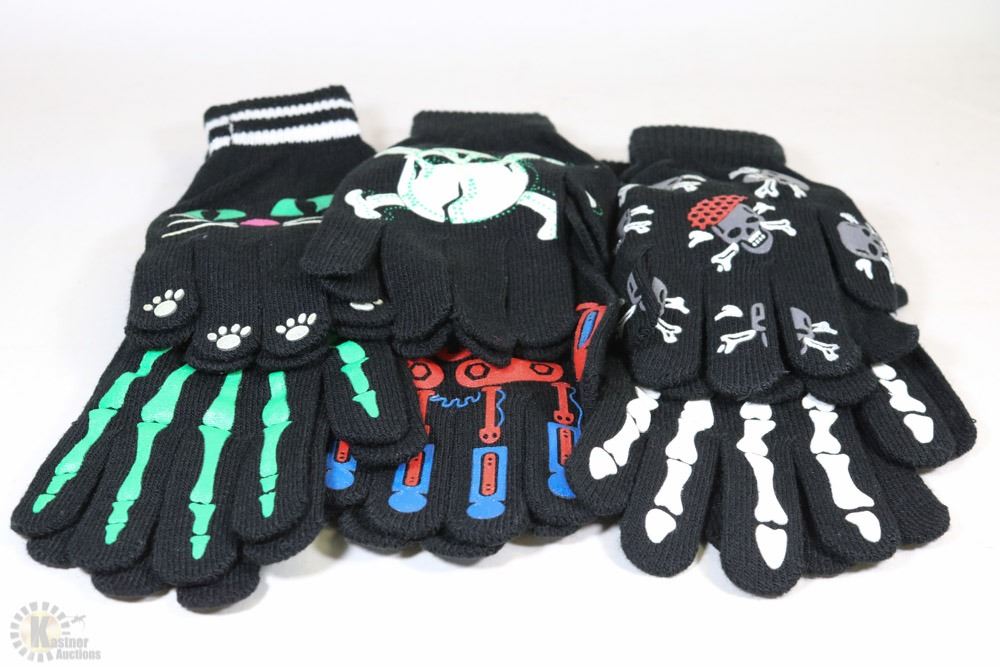 6 PACK OF GLOW IN THE DARK HALLOWEEN GLOVES