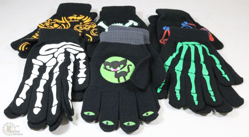 6 PACK OF GLOW IN THE DARK HALLOWEEN GLOVES